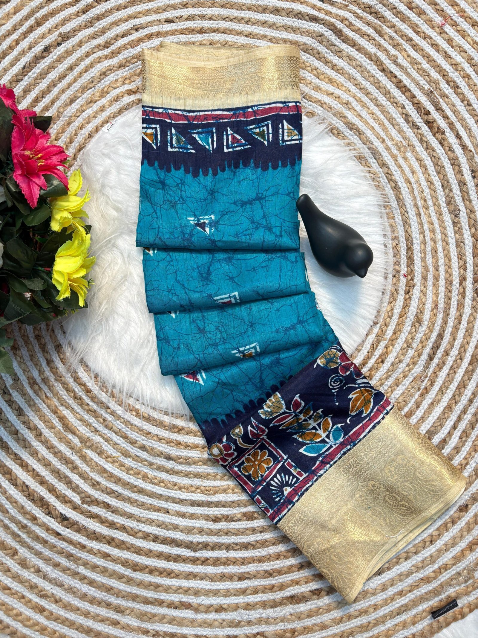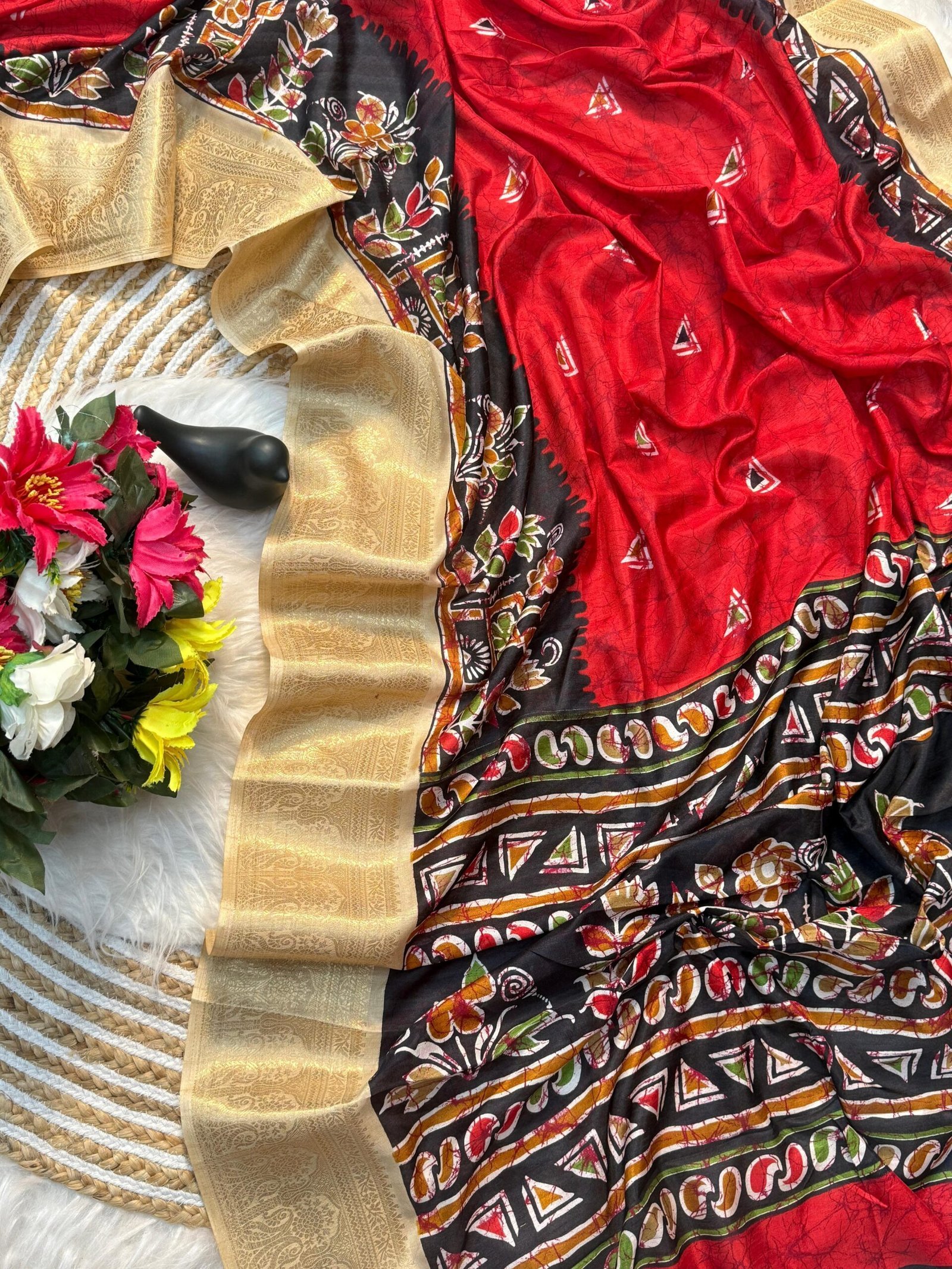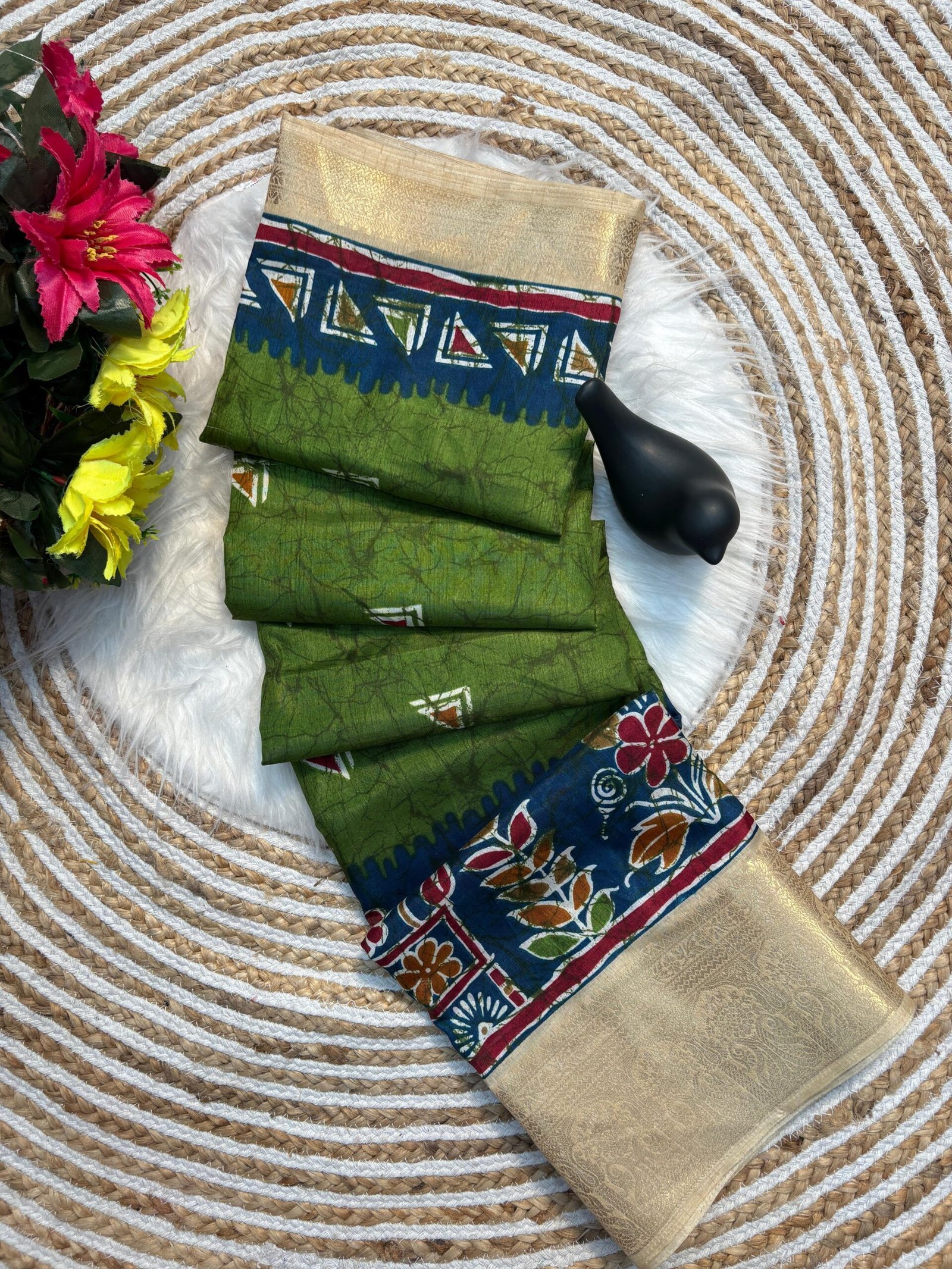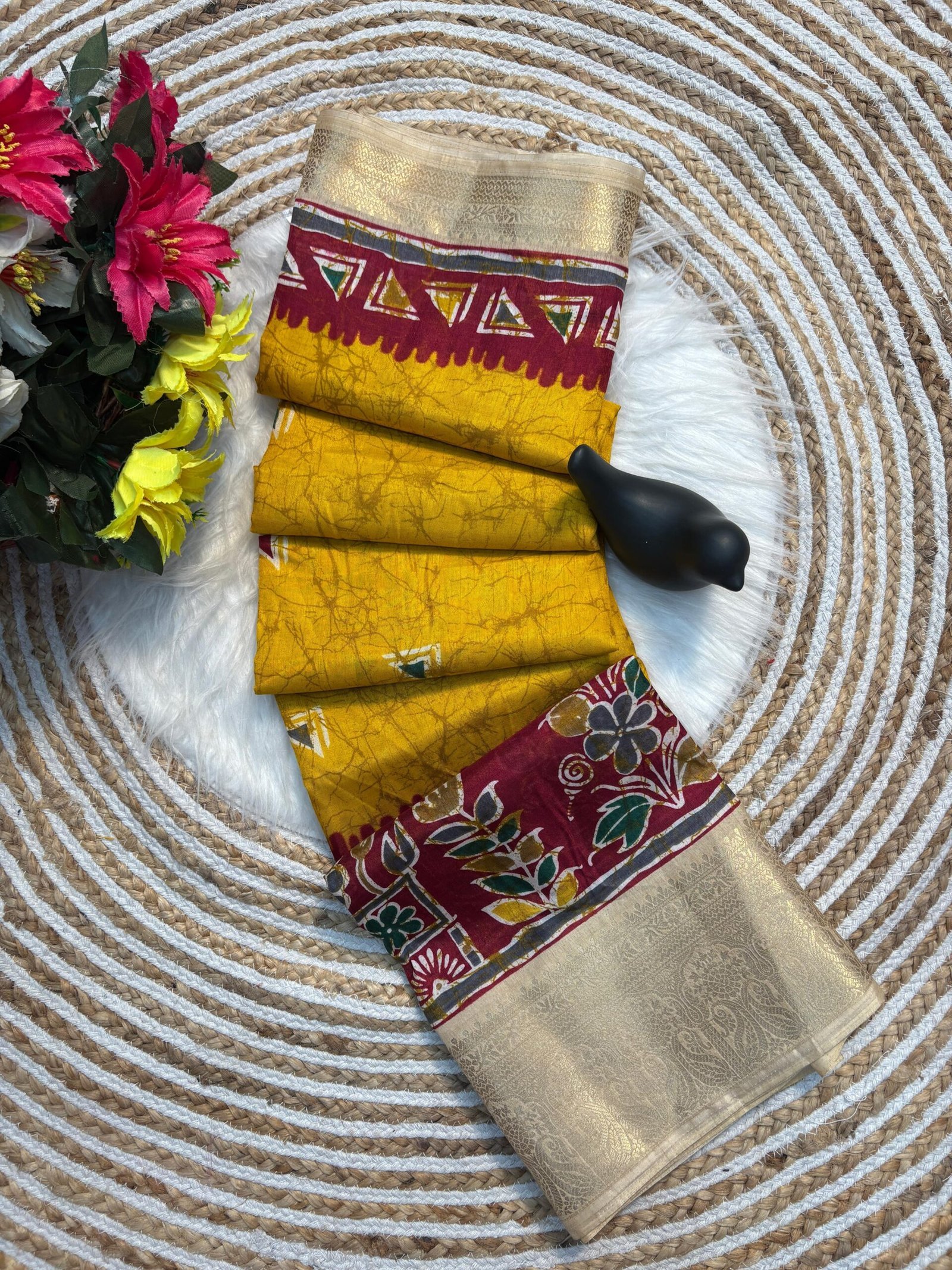 - Saree Fabric: Premium Dola Silk with Jacquard Border